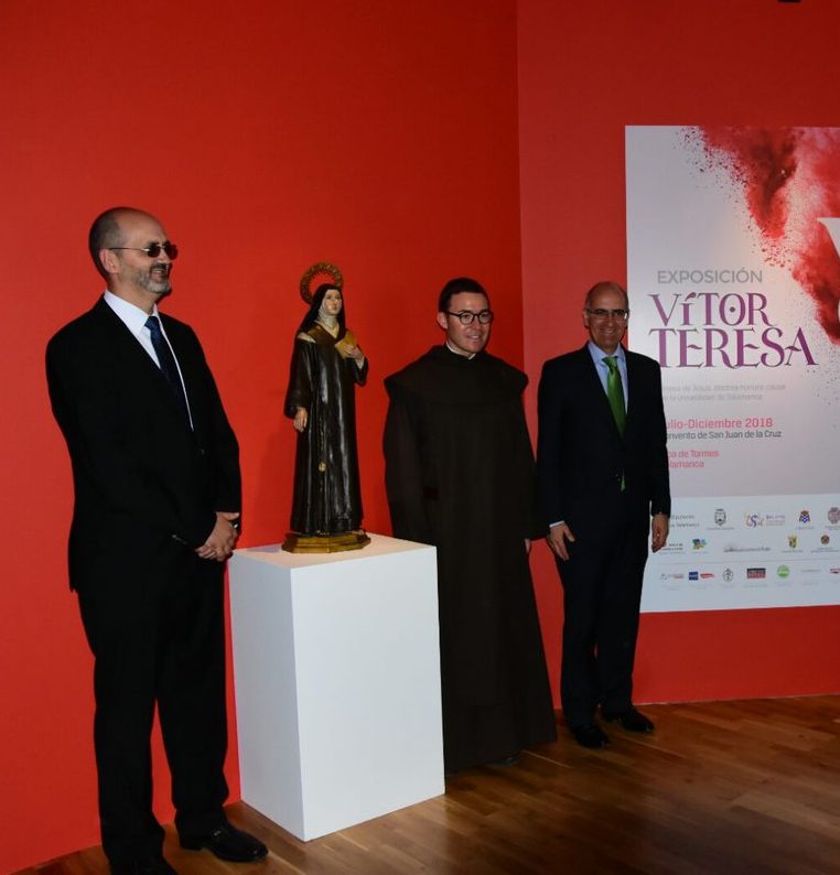 No se trata de una muestra al uso, sino de una propuesta estética que aúna continente y contenido, aproximando al visitante el legado y la palabra (aún viva y permanente) de la reformadora en diálogo mutuo. Señalaba fray Luis de León en la edición prínceps de las obras de la Madre Teresa que la mejor manera de conocerla es a través de sus hijas y de sus obras. Por primera vez se abre al visitante el complejo del Convento de los padres Carmelitas de Alba, en cuyo primer piso se distribuyen las sucesivas estancias de la muestra. La adecuación de las obras escogidas a los espacios que ocupan permite enfrentarlas en el entorno adecuado del interior de una casa dispuesta y pensada para vivir el carisma carmelitano. No hay mejor contextualización que experimentar las obras seleccionadas, muchas inéditas, en la sencillez del trazado de las áreas que transmiten la vida real del que las habita. Es posible redescubrir el progreso espiritual hacia la luz que se opera en el trabajo interior de la clausura, apreciable físicamente tras cruzar el umbral de la iglesia -con una iluminación muy ponderada, donde se propone una mirada a la “Teresa interior”- y descubrir la claridad que inunda la intimidad del claustro, donde también se revela la “Teresa apostólica” y su posterior exaltación, sin olvidar la figura de San Juan de la Cruz. En todo ello se vive y respira la experiencia de la Santa, una invitación abierta a todos en académica aclamación de triunfo: ¡Vítor Teresa!