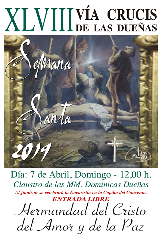 La Hermandad del Cristo del Amor y de la Paz celebrará el domingo 7 de abril, a las 12:00 horas, el XLVIII Vía Crucis de las Dueñas, que se desarrolla cada año en el claustro del convento de clausura de las Madres Dominicas-Dueñas. Las catorce estaciones serán comentadas por diferentes cofrades de la Semana Santa de Salamanca.