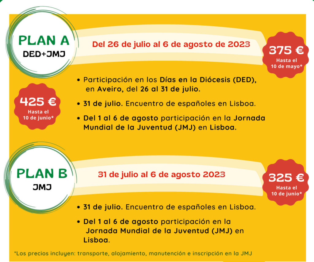 Además, desde la Diócesis se ofrece la oportunidad tan solo de participar en la Jornada Mundial de la Juventud, a un coste de 325 euros.