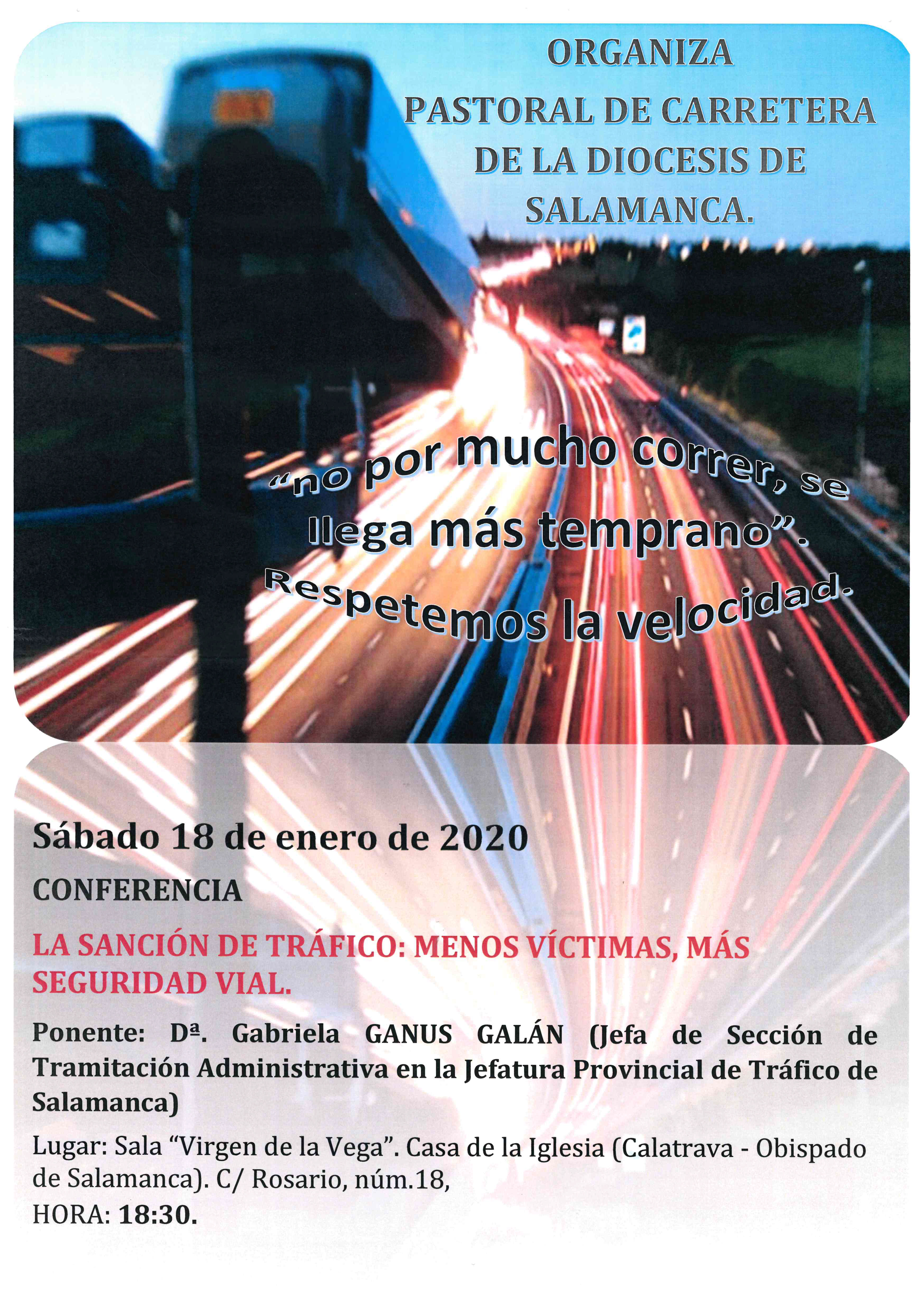 El servicio diocesano de Pastoral de Carretera ha organizado para el próximo 18 de enero, a las 18:30 horas, una conferencia titulada “La sanción de tráfico: menos víctimas, más seguridad vial”, a cargo de la jefa de sección de Tramitación Administrativa en la Jefatura Provincial de Tráfico de Salamanca, Gabriela Ganus Galán.