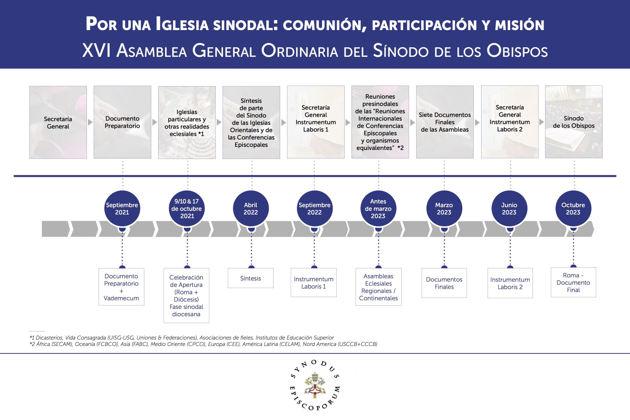 Para garantizar que todos los creyentes puedan participar en este proceso de escucha y reflexión, el Papa Francisco ha diseñado un itinerario que supone una modalidad inédita para preparar el camino hacia la Asamblea de 2023, tanto por sus fases como por la implicación que pide a todos los bautizados. Así, el camino sinodal se articula en tres fases: