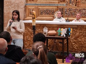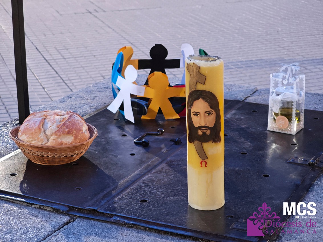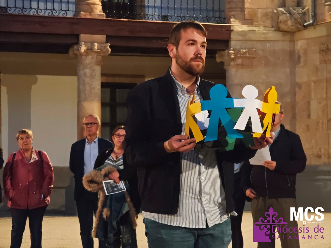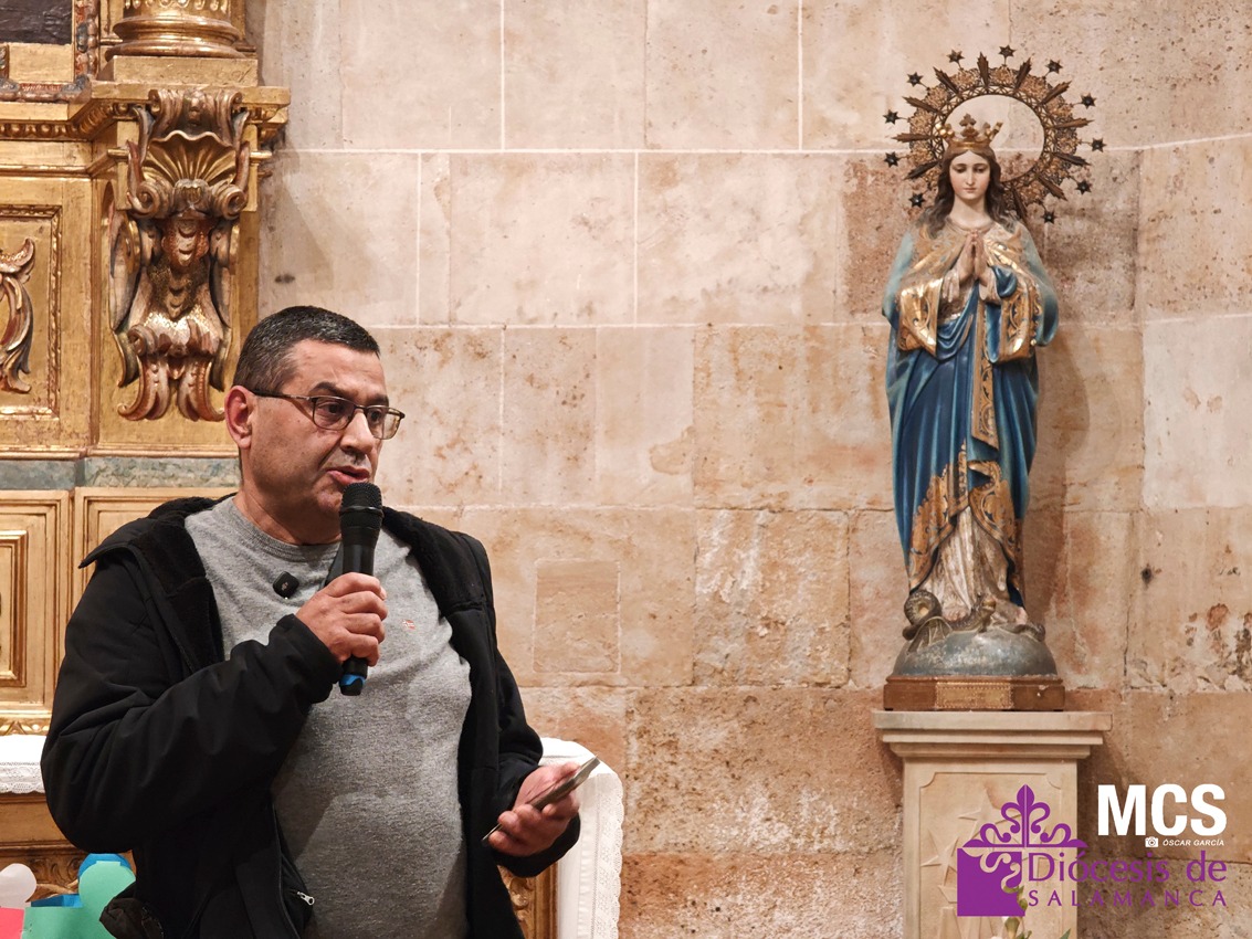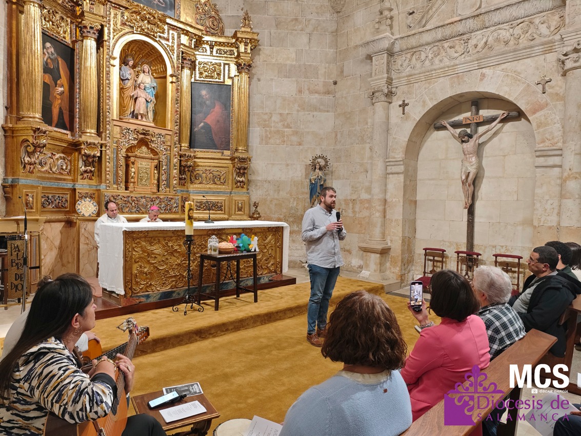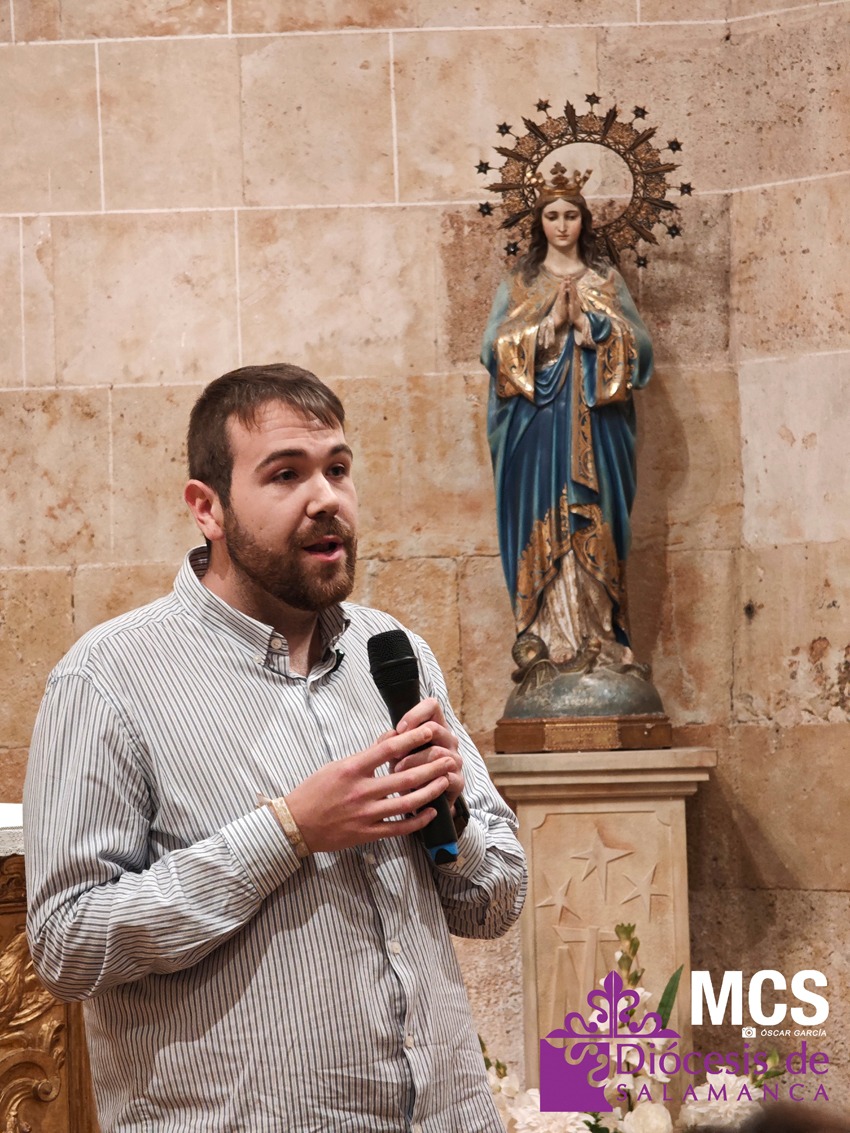 El tercer signo, la unidad, fue presentado por Mario Cabrera, seminarista de la Diócesis de Salamanca en su etapa pastoral. Subrayó que el mundo necesita comunión y que la Iglesia solo puede construirse si pone en el centro al hermano: “He vivido que la unidad no es algo accesorio, es necesaria, y han sido los hermanos los que me han levantado en los momentos de oscuridad”. Para él, seguir a Jesús significa caminar en fraternidad, reconociendo que “Cristo es la cabeza y nosotros un solo cuerpo”.