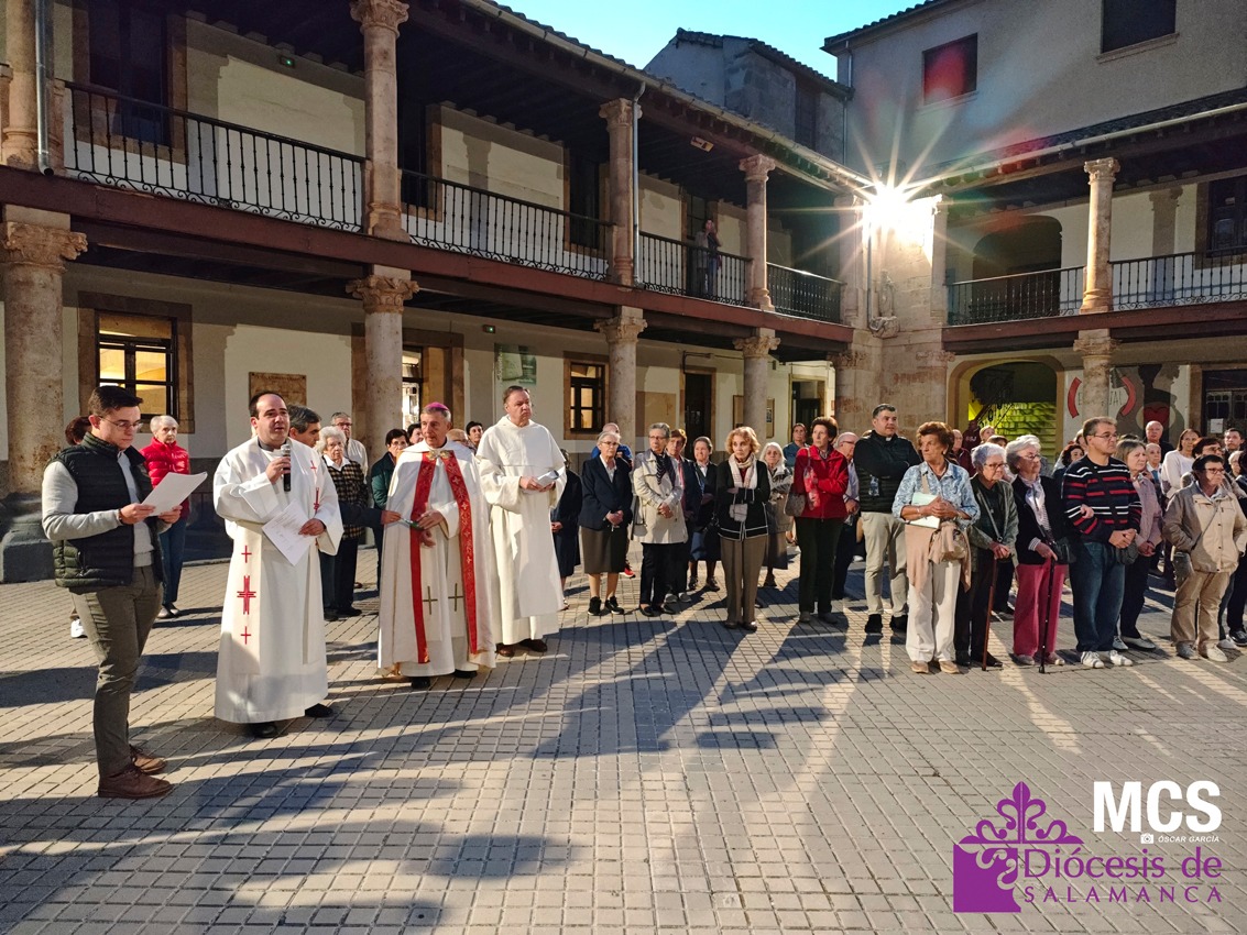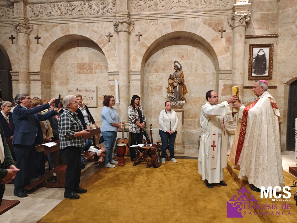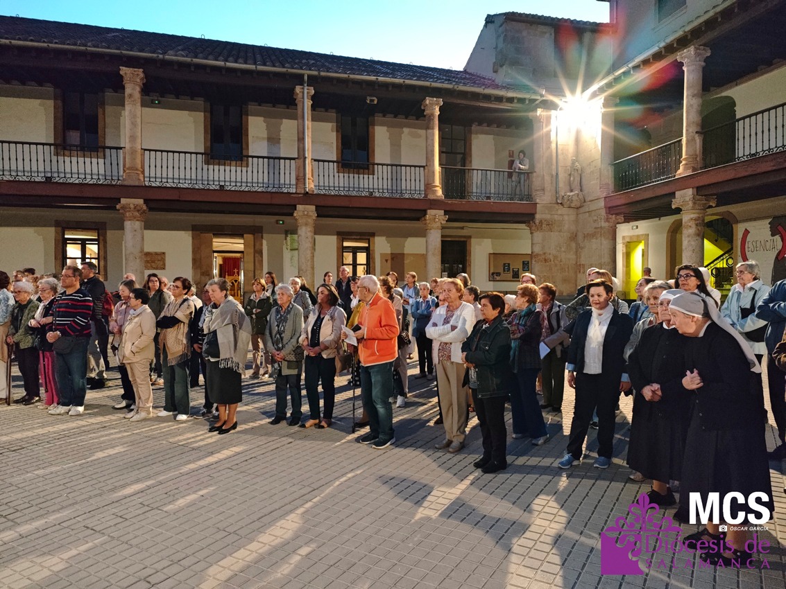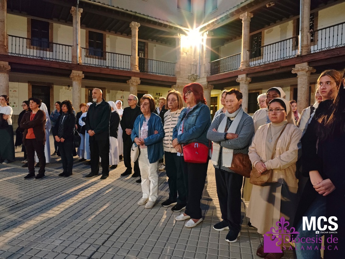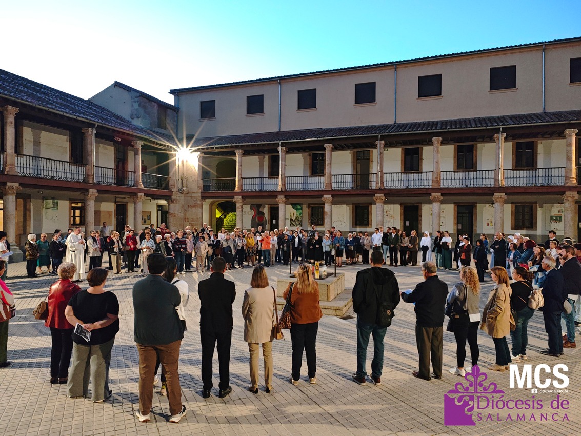 La capilla de las Siervas de San José, en el colegio de la Sagrada Familia, se llenó de silencio, cantos y símbolos en la Vigilia diocesana por las Vocaciones celebrada este jueves, 25 de septiembre, en XVII Semana de Pastoral. La celebración comenzó junto al pozo del patio en torno al cirio pascual, donde se presentaron tres signos sencillos —el crisma, el pan y un círculo de muñecos— que recordaron a los participantes la llamada a vivir la fe recibida en el bautismo con alegría y compromiso.